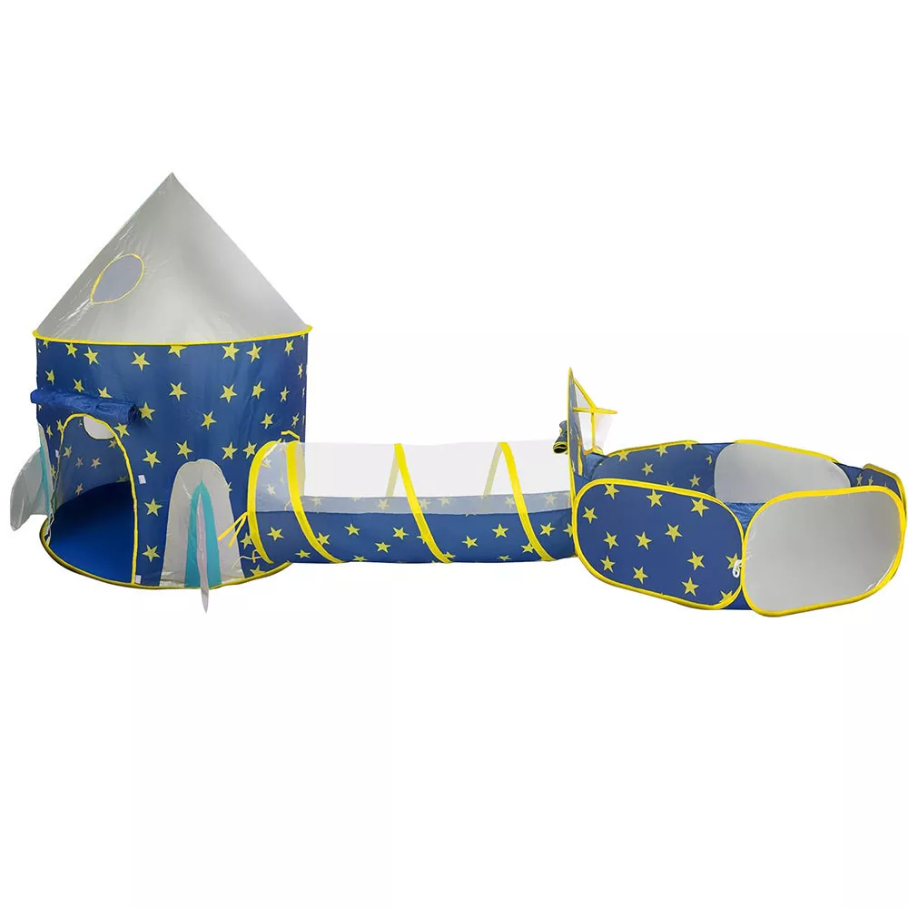 A játszósátor alagúttal 3 részből áll, 2 különböző alakú és méretű gyereksátor részből, valamint egy összekötő mászóalagútból. A játszó karámban található egy kosárlabda palánk, melybe a kicsik dobálhatnak labdákat. Áttetsző, hálós anyag betétjeinek köszönhetően folyamatosan nyomon követheted gyermekedet játék közben.A játszósátor ablakkal is rendelkezik és az alagút anyaga átlátszó, így figyelheted gyermekedet játék közben.