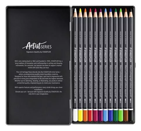 Akvarell színes ceruza készlet, hatszögletű, fémdobozos, STAEDTLER Mars® Lumograph® 104, 12 különböző szín (TS104M12)