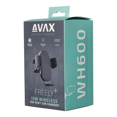 Autós töltő, vezeték nélküli, szellőzőrácsra, AVAX WH600 Freely+, fekete (AXWH600)