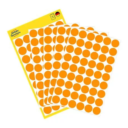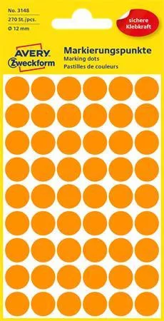 Etikett, 12 mm, kör, AVERY ZWECKFORM, neon narancs, 270 etikett/csomag (AY3148)