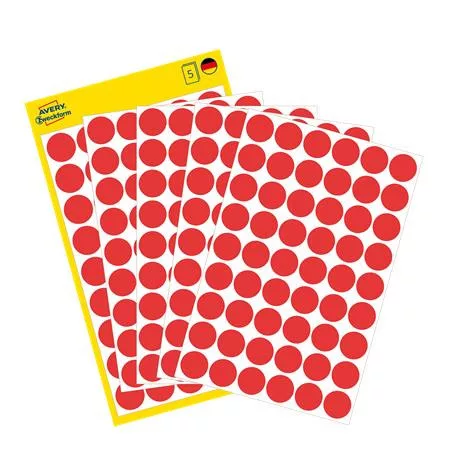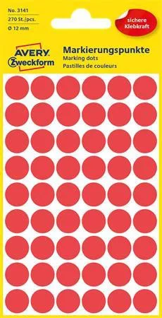 Etikett, 12 mm, kör, AVERY ZWECKFORM, piros, 270 etikett/csomag (AY3141)