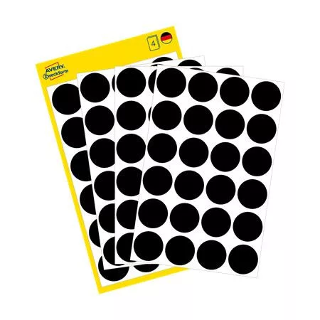 Etikett, 18 mm, kör, AVERY ZWECKFORM, fekete, 96 etikett/csomag (AY3003)