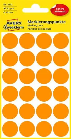 Etikett, 18 mm, kör, AVERY ZWECKFORM, neon narancs, 96 etikett/csomag (AY3173)
