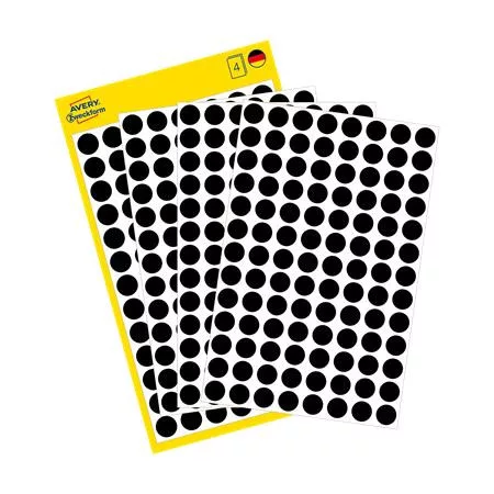 Etikett, 8 mm, kör, AVERY ZWECKFORM, fekete, 416 etikett/csomag (AY3009)