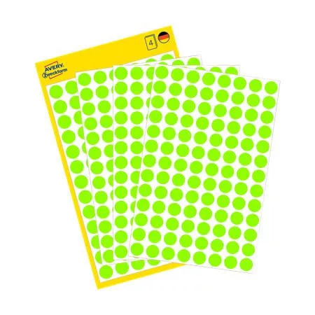 Etikett, 8 mm, kör, AVERY ZWECKFORM, neon zöld, 416 etikett/csomag (AY3179)