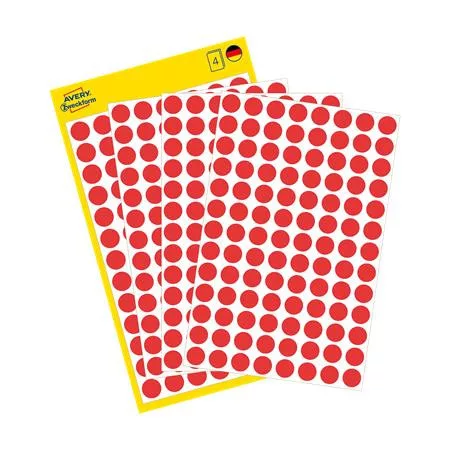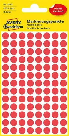 Etikett, 8 mm, kör, AVERY ZWECKFORM, piros, 416 etikett/csomag (AY3010)