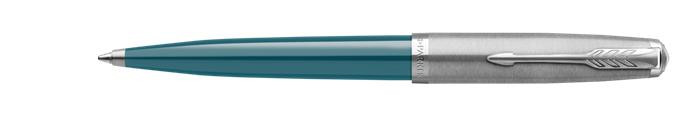 Golyóstoll, 0,7 mm rotációs, ezüst színű klip, türkiz tolltest, PARKER Royal 51 Core, fekete (ICPRCTU)