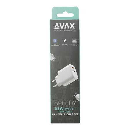 Hálózati töltő, GaN, USB-A + USB-C, AVAX CH360 Speedy, fehér (AXCH360)