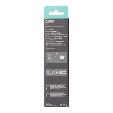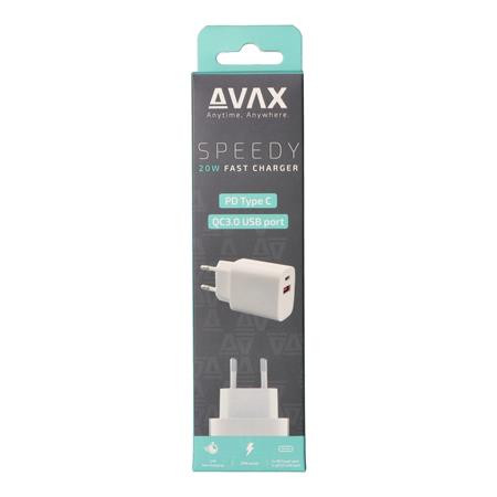 Hálózati töltő, USB-A + USB-C, 20W, AVAX CH320 Speedy, fehér (AXCH320)