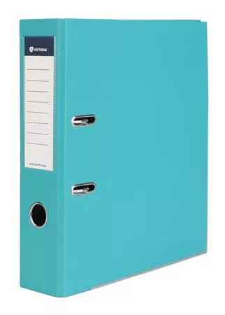 Iratrendező, 75 mm, A4, PP/karton, élvédő sínnel, VICTORIA OFFICE, Basic, türkiz (IDI75T)