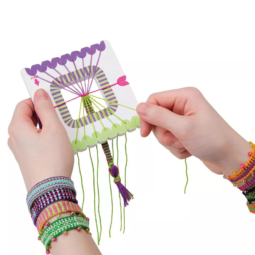 Legyen szó kreatív időtöltésről, baráti vagy családi ajándékozásról vagy csupán önmagát ajándékozná meg egy új kiegészítővel garantáltan örömteli szórakozást biztosít. A 30 különböző színű fonál lehetővé teszi, hogy teljesen személyhez és hangulathoz szabhassa a készülő művet és egyedi dizájnokat hozhasson létre. A szett tartalmaz  különböző színű gyöngyöket amelyekkel díszítheti a karkötőket. A karkötő sablonok segítenek a fonás folyamatában így nagyobb sikerélményt nyújthat egy bonyolultabb terv elkészítése is. Akár teljesen kezdő a karkötőkészítésben, akár profi a sablonnal egyszerűen és pontosan alkothat.