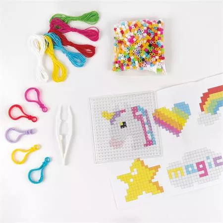 Unikornis tematikájú kreatív készlet, amellyel a gyerekek akár 5 különböző formájú kulcstartót készíthetnek. A csomag minden szükséges alapanyagot tartalmaz az alkotáshoz, valamint egy könnyen követhető útmutatót. Ez a szórakoztató tevékenység számos pozitív hatással járhat: csökkenti a stresszt, növeli az önbizalmat, fejleszti a memóriát és a koordinációt, miközben a gyerekek egy saját készítésű alkotást hozhatnak létre.