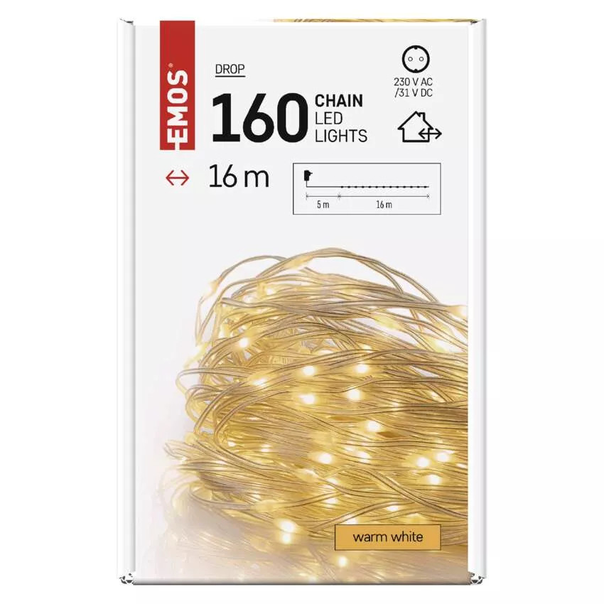 LED karácsonyi drop fényfüzér, 16 m, kültéri és beltéri, meleg fehér, időzítő