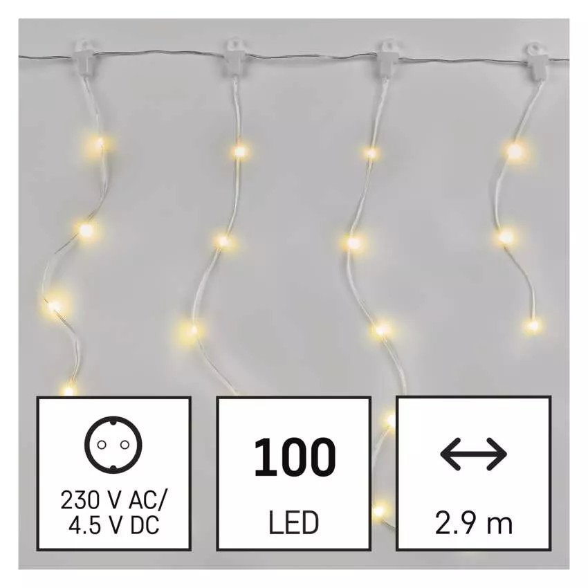 LED karácsonyi drop fényfüzér – jégcsapok, 2,9 m, kültéri és beltéri, meleg fehér, progr.