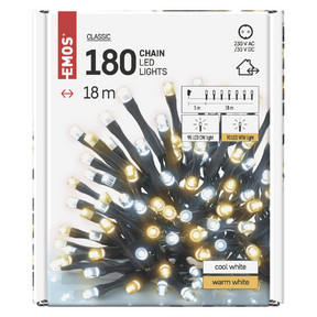 LED karácsonyi fényfüzér, 18 m, kültéri és beltéri, meleg/hideg fehér, időzítő