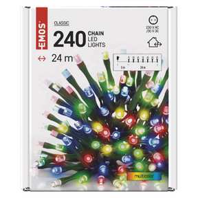 termék: lánc, fény színe: multicolor, méretek: 24 m, használat: kültéri és beltéri, időzítő, távvezérlő: nem, funkció: világít, tápellátás típusa: AC (hálózati) adapter, forma: klasszikus, LED-ek száma: 240, LED-ek közötti távolság: 10 cm, LED mérete: 5 mm, tápvezeték hossza: 5 m, a fa magasságához: 230 cm, kábel színe: zöld, fogyasztás: 3,6 W, bemeneti feszültség: 230 V AC, kimeneti feszültség: 31 V DC, csatlakoztatási lehetőség: nem, védettség: IP44, élettartam: 10 000 óra, anyag: PVC, garancia-időszak: 2 év, értékesítési csomagolás: 1 db, doboz