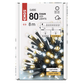 LED karácsonyi fényfüzér, 8 m, kültéri és beltéri, meleg/hideg fehér, időzítő