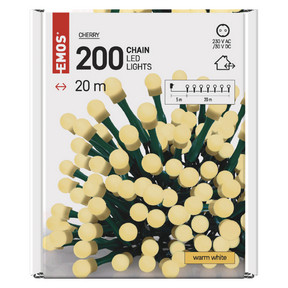 LED karácsonyi fényfüzér, cseresznye – golyók, 20 m, kültéri és beltéri, meleg fehér, időz