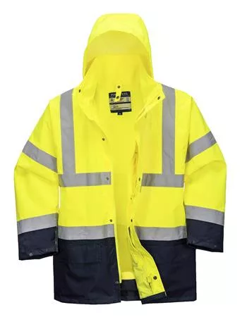 Sokoldalú és kényelmes munkavédelmi kabát modell, amely széles felhasználói kör számára nyújt láthatósági megoldást. Minőségi anyagokból, igényes kivitelezéssel készült. Levehető ujjakkal, és szőrmegallérral, kivehető szőrme béléssel rendelkezik, amelyek biztosítják a többfunkciós lehetőséget a viselőjének. A tartós poliészter/pamutszövet nagy teljesítményt és maximális viselési komfortot biztosít, a szőrmebélés pedig meleget nyújt. Többfunkciós biztonsági zsebek (9 sokoldalú, praktikus tároló zseb), "D gyűrű" a kulcsoknak, vagy az azonosító kártyának. Kötött mandzsettával és derékszegéllyel van ellátva.