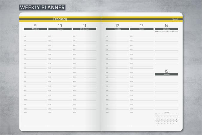Naptár, A5, heti, 2026, kemény borító, SIGEL Linescape, szürke-sárga (SIL2603)