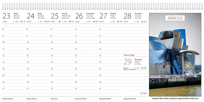 Senki sem vitathatja, hogy az asztali naptárak az irodavilág egy leghasznosabb segítői. Ha Önnek fontos a pontosság, az időpontok betartása és ezáltal az ügyfelek elégedettsége, akkor a cég egyik asztaláról sem hiányozhatnak ezek a tervező alkalmatosságok.