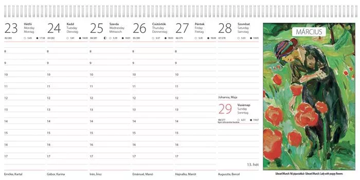 -magyar-angol-német nyelvű naptárháló