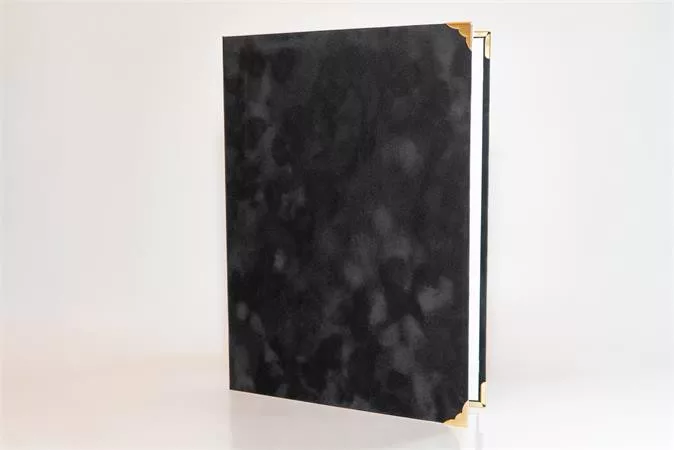 Oklevéltartó, A4, exkluzív, plüss, 4 fém sarokkal, fekete (ISKE243)