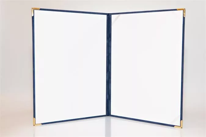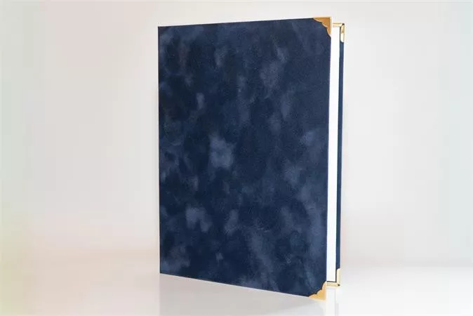 Oklevéltartó, A4, exkluzív, plüss, 4 fém sarokkal, kék (ISKE241)