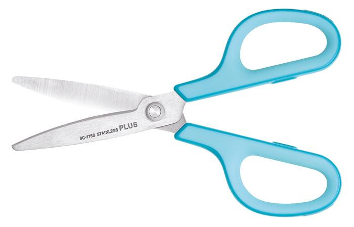 Olló, általános, 17,5 cm, PLUS Fitcut Curve, világoskék (PLUS35052)