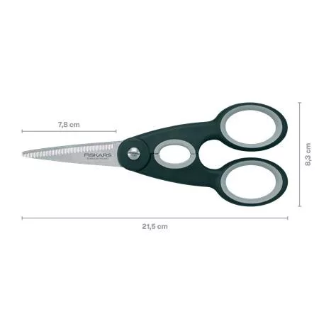 Ez a Fiskars konyhai olló meg fog lepni funkcionalitásával és éles pengéivel. Kiváló minőségű acélból készült, és nem tartalmaz nikkelt.