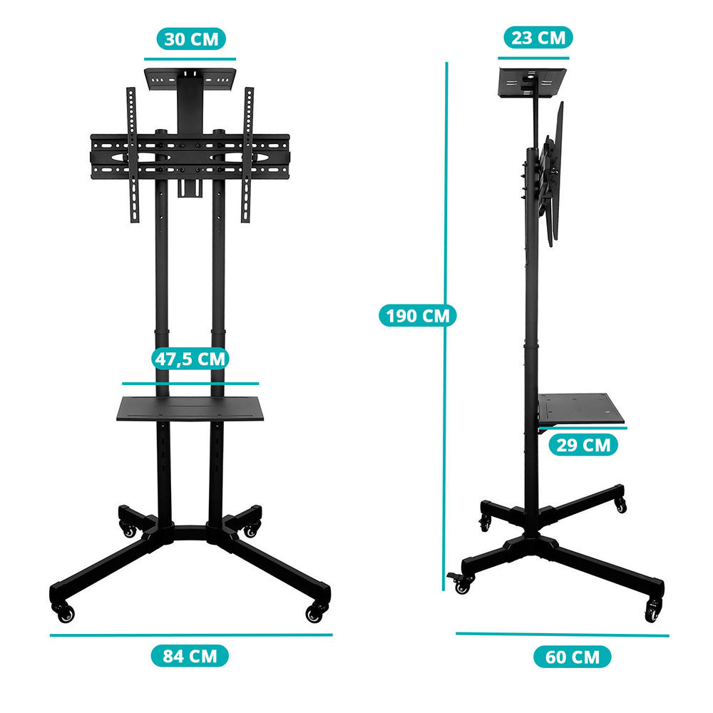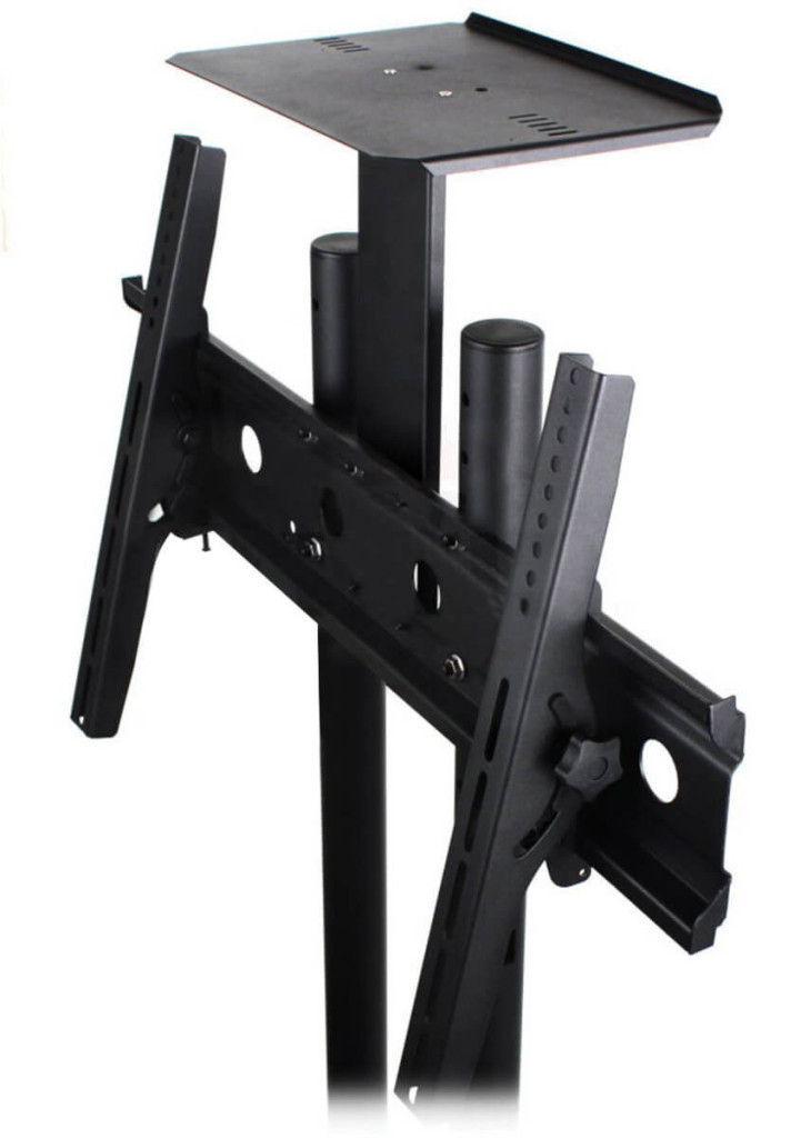 Az állványon 1 db laptop tartó tálca, 1 db TV tartó konzol, emellett 1 db projektor vagy kamera tartó tálca kapott helyet.