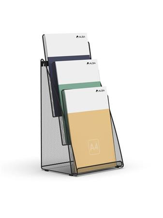 Prospektustartó, fémhálós, asztali, álló, A4, 3 rekesz, ALBA, fekete (BAP34)