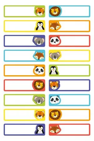 Ruhacímke, műanyag, iskolai, 45x13 mm, kézzel írható, AVERY ZWECKFORM, állatos, 36 címke/csomag (AYETVET36A)