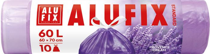 Szemeteszsák, zárószalagos, 60 l, 10 db, 60x70 cm, 15 &mikro;, ALUFIX, levendula (KHT1536)