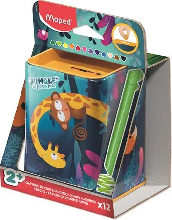 Színes ceruza készlet, fém perselyben, MAPED „Jungle Fever Infinity Kidy”, 12 különböző szín (IMA864601)