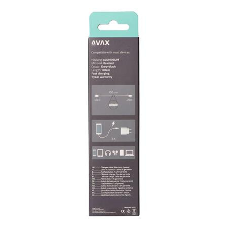 Töltőkábel, USB-C - USB-C, 60W, 1,5 m, AVAX CB302G, acélszürke (AXCB302G)