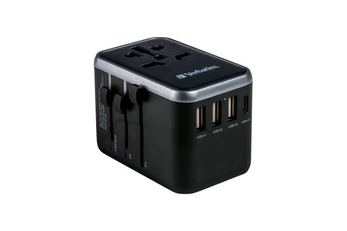 A Utazó adapter, univerzális, USB-A(QC 3.0)/USB-C(PD61W)2xUSB, VERBATIM UTA-04 (VT49546) A Verbatim univerzális utazási adapter több mint 180 országban használható: a világ bármely helyi tápegységéhez csatlakozhat, és újratöltheti energiaigényes eszközeit, például laptopjait és fényképezőgép-akkumulátorait. Az alján található USB-C és USB-A portok segítségével feltöltheti bármilyen USB-eszközét.