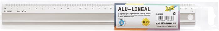 Vonalzó, aluminium, csúszásgátlós, 30 cm, FOLIA (FL23030)