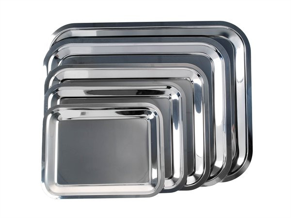 Tálca, szögletes, rozsdamentes acél, krómozott, 45x35,5cm (KHKE031)