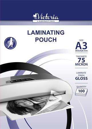 Meleglamináló fólia, 75 mikron, A3, fényes, VICTORIA OFFICE (ILKVF753)