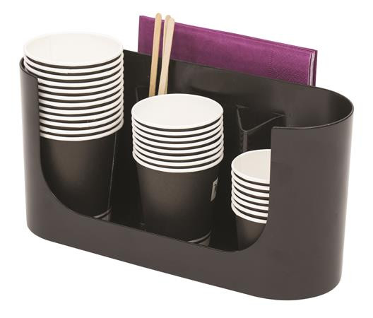 Ez a stílusos és kompakt tárolóegység lehetővé teszi a műanyag pohár, keverő és szalvéta könnyű elérését.